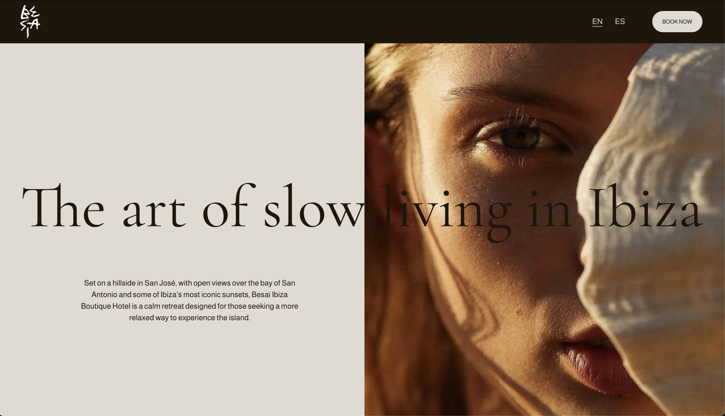 For Besai, we designed a website aligned with a slow luxury audience in Ibiza — refined, intentional, and quietly powerful. The digital experience was crafted to transmit calm from the very first scroll, using clean layouts, generous white space, natural tones, and immersive imagery that reflects the essence of the property.